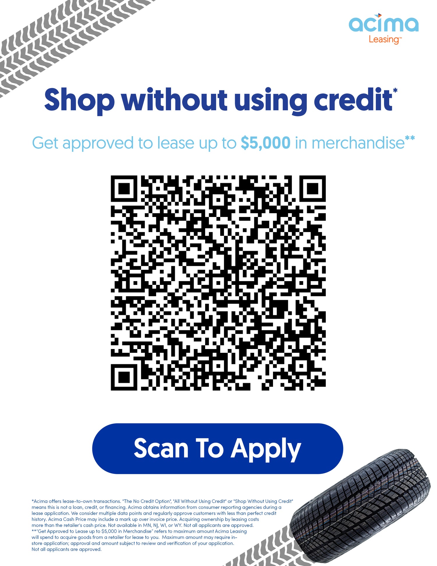 Need new tires and short on cash, no problem, just text to apply, we got you covered!